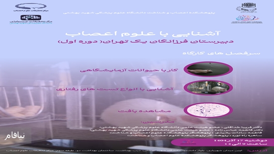 کارگاه آشنایی با علوم اعصاب برای دانش آموزان دبیرستان فرزانگان یک تهران (دوره اول) در تاریخ دوشنبه 17 آذرماه 1404 از ساعت 9 الی 12 برگزار می گردد.